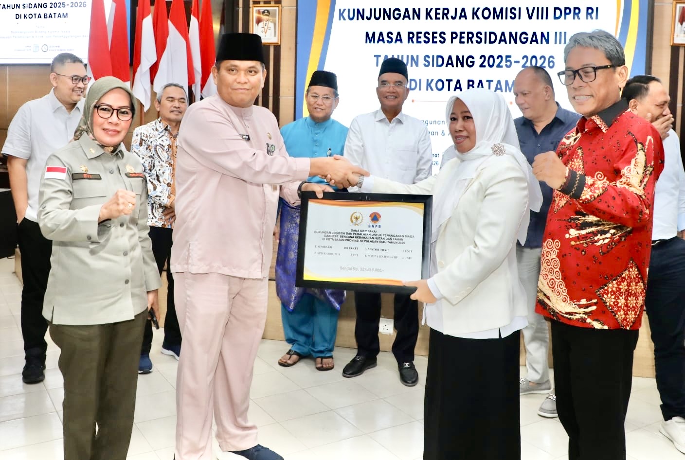 Bantuan tersebut diterima langsung Kepala Badan Penanggulangan Bencana Daerah (BPBD) Kota Batam, Agus Bendri, dan disaksikan langsung Deputi Bidang Logistik dan Peralatan BNPB, Andi Eviana, dalam kunjungan kerja Komisi VIII DPR RI pada masa reses Persidangan III Tahun Sidang 2025–2026.