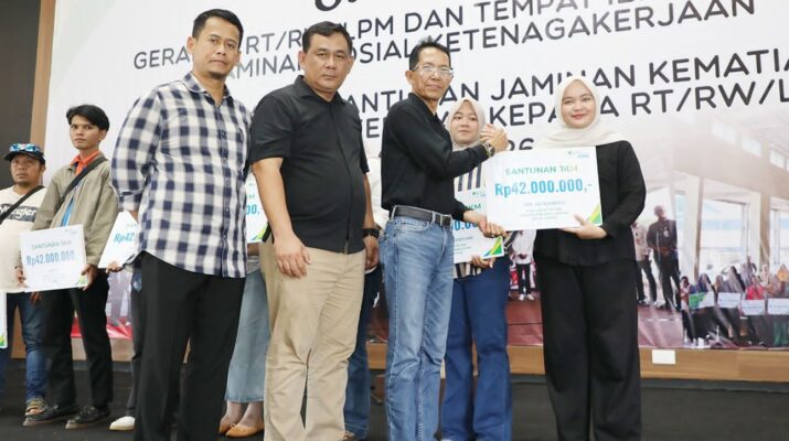 Diskan Batam – Wali Kota Batam, Amsakar Achmad, menyerahkan santunan Jaminan Kematian dari BPJS Ketenagakerjaan kepada ahli waris RT, RW, dan LPM di Gedung Serbaguna SP